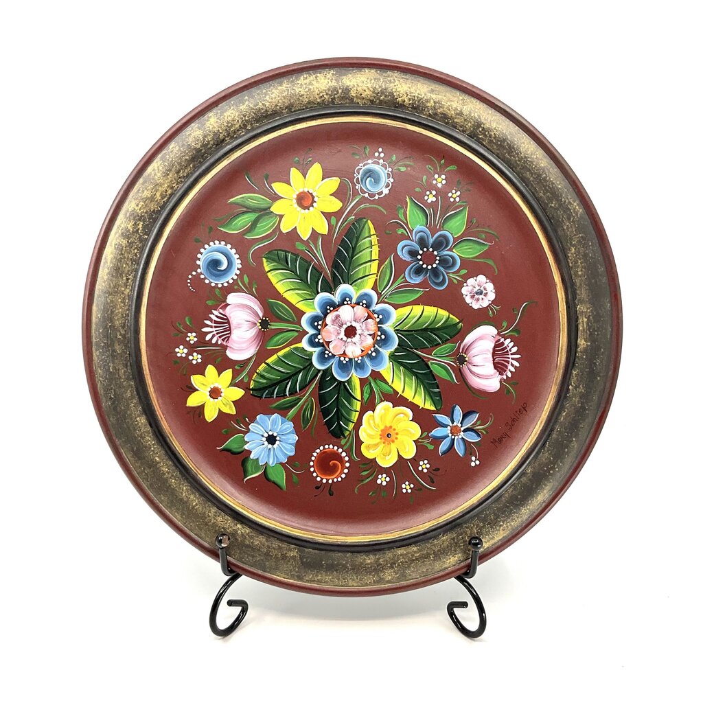 12" Os Rosemaled Plate #2 by Mary Schliep