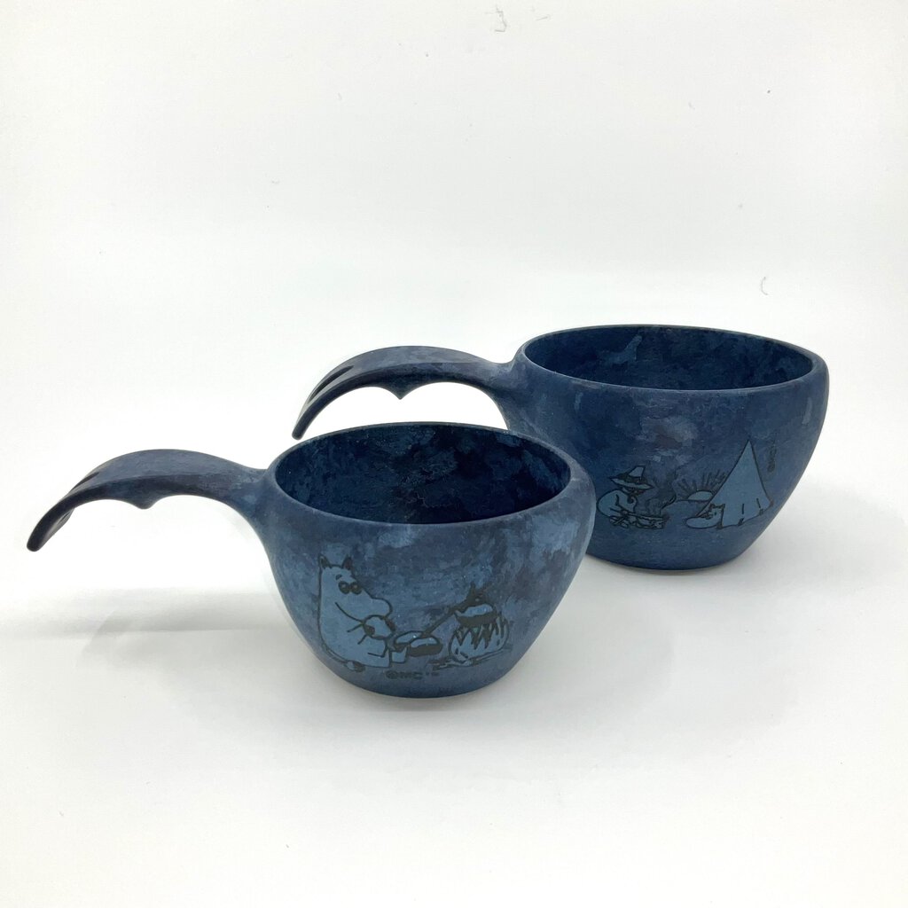 Kupilka Moomin Cups! The Moomins are the central characters in a series of novels, short stories, picture books, and a comic strip by Finnish writer and illustrator Tove Jansson and they are as cute as can be. These two designs from Kupilka are a magical fun way to celebrate the Moomin family that live in Moominvalley, surrounded by mountains, forests and the sea- the perfect background and inspiration for fantastic adventures. The Moomin cups come in two sizes: the larger "Camping" cup is 3 1/4" across with Moomintroll and Snufkin on an adventure. The smaller Moomintroll coffee cup is 2 3/4" interior dimension and pictures Moomintroll enjoying a nice campfire. Both sizes come in Cobalt Blue color only at this time.